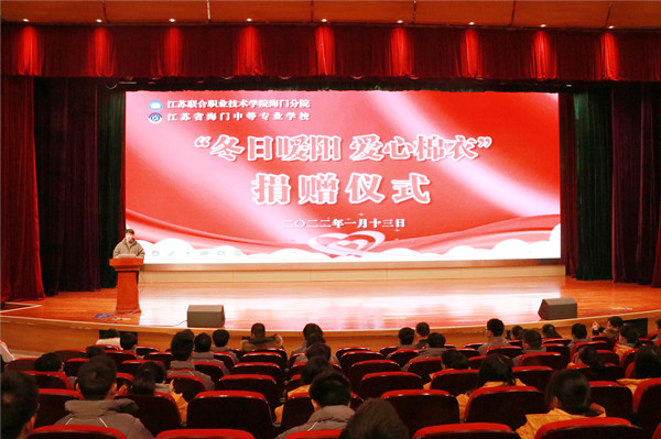 1月13日下午,海门中专在謇公湖科教大会堂隆重举行“冬日暖阳 爱心棉衣”捐赠仪式。南通工埔智能制造实训基地校长陆鑫、海门中专副校长王小辉、相关系部德育工作人员、受赠学生代表参加了捐赠仪式。活动由学生工作部主任张海华主持。 副校长王小辉致欢迎辞。王校长代表校长室向陆鑫校长表示衷心感谢和热烈欢迎,并指出捐赠善举不仅带来的是物质上的帮助,更重要的是为海专学生上了一堂生动的思政课。王校长希望受赠学生能珍惜当下,感恩善举,传递善意,希望每一位学生都能做一个传递正能量的优秀海专人。 捐赠人陆鑫校长发言讲话。陆鑫以校友、学长的身份表达了对母校的感恩之情,同时又以职教追梦人的身份讲述了实现梦想的过程,传达了一位成功企业家对社会的拳拳热忱和责任担当。 捐赠现场,陆鑫向受赠学生代表捐赠棉衣,王小辉校长向陆鑫回赠锦旗。随后,陆鑫校长分别和王小辉校长及同学们合影留念。 值得一提的是,捐赠人陆鑫是我校06届电子电工专业毕业生,是江苏林格自动化科技有限公司党支部书记、工会法人、主席,南通工埔智能制造实训基地校长,南通产业技术研究院企业联合党支部书记、督导。多次荣获五一劳动奖章,多次获评优秀共产党员。她积极参与社会爱心组织捐赠活动,先后捐赠汉中、泗洪、崇川一日捐、工会金秋助学等价值数百万元物资。 陆鑫校长向我校捐助了100件御寒棉衣,在本次活动中,六大系部和中南产业学院共88名家庭困难学生接受了爱心捐助。(供稿:学生工作部)