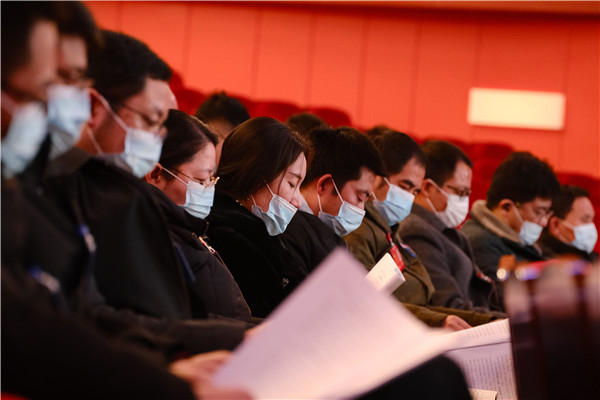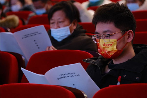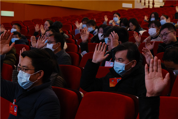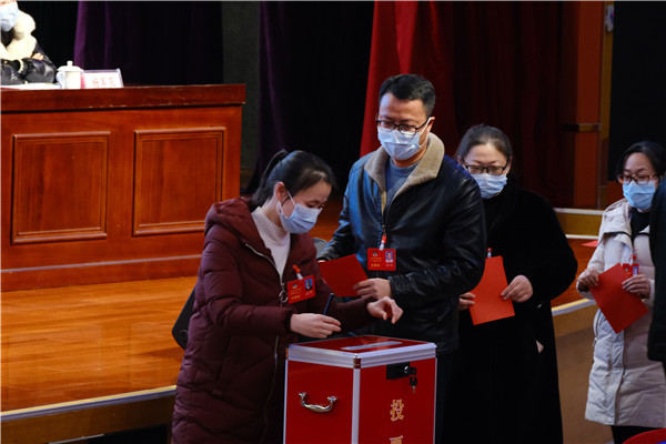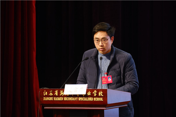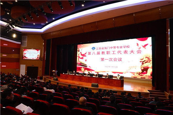 1月15日下午,海门中专第八届教职工代表大会第一次会议召开。 代表们忠实履职,认真听取并审议教代会报告,围绕学校2021年重大事项进行广泛讨论,并提出建设性的意见。会期不长,却承载着师生期望,汇聚广泛共识,传达信心力量。 —教代会现场— 下午1:30,全体齐声唱响《国歌》,大会开幕。 —奏唱《国歌》— 会议分预备会议和正式会议两部分。 预备会议通报了大会的筹备情况;表决通过了代表资格审查报告、代表团团长建议名单、大会主席团成员和秘书长建议名单,以及第八届教职工代表大会第一次会议议程(草案)。 —预备会议现场— 正式会议开始。 首先,校长徐忠作题为“领跑新赛程,勇攀新高峰”的学校工作报告。 ——校长徐忠作学校工作报告—— 报告从“办学声誉提升”“领航计划实施”“多个项目达成”“高职评估部署”“常规工作落实”“办学优势扩大”六个方面入手,全面回顾了2021年学校工作情况。 报告明确提出2022年学校工作思路及目标,强调新一年学校将要面临“五年制高职评估”“领航学校建设收官”“全国优质职业学校创建”等重大任务。 报告号召,要更加振奋精神,鼓舞斗志,更加团结一心,埋头实干,确保各项工作圆满达成,推动学校事业继续高质量发展走在南通、乃至全省前列。 工会主席肖冰作工作报告。 ——工会主席肖冰作工会工作报告—— 他回顾了第七届工会委员会自2019年1月成立以来,紧紧围绕学校中心工作,在“服务学校发展”“服务教育教学”“服务全校教职工”等方面所做的努力,充分发挥了基层工会组织在推进改革、促进发展、维护稳定、打造“和顺”校园等工作中的桥梁和纽带作用。对于即将成立的新一届工会委员会,肖冰寄语要顺势而为,以更加积极主动的工作态度,为学校高质量发展永远走在前列再立新功。 —与会代表认真听会— 根据议程,校长办副主任纪红兵对新修订的《海门中专教师工作量计算办法》和《海门中专事业单位工作人员岗位晋升竞聘办法》予以说明。 ——说明工作量计算及岗位晋升竞聘办法修订稿—— 认真讨论,碰撞智慧火花;深入交流,产生真知灼见。分组讨论阶段,各代表团对2021年度学校工作报告、第七届工会委员会工作报告、教师工作量计算办法及岗位晋升竞聘办法修订稿进行了讨论审议。代表们献良策、话发展、气氛热烈,一致认为,报告思路清晰、目标明确、要求具体,办法结合学校实际,具有很强的导向性和可操作性。大会决定批准两个工作报告、通过两个办法的修订稿。 —各代表团分组讨论并审议— 会议选举产生了新一届工会委员会委员。 —选举第八届工会委员— —新一届工会委员代表发言— —通过大会决议— 党委书记宋健肯定了此次教代会成果,并提出两点意见:一要以领航攻坚为契机推动学校发展;二要用高效执行为标准保障学校发展,并要求做到四个“担”:“担责不推”“担事不躲”“担难不怯”“担险不畏”。 —党委书记宋健讲话— 唯有奋斗,才能创造历史;只有实干,方可成就未来。2021年的坚实步履,2022年的美丽画卷,将激励全校上下以时不我待、只争朝夕的精神和昂扬奋进、不懈拼搏的姿态,开启新征程,描绘新蓝图。