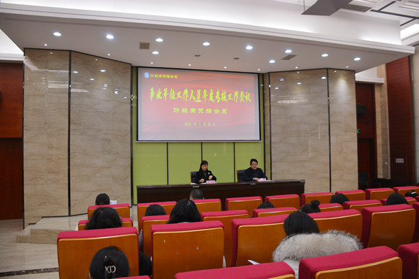 1月20日上午9:15,财贸系全体教师在D楼名匠报告厅参加年度岗位考核工作会议,茅一娟副校长出席了会议,会议由王飞主任主持。