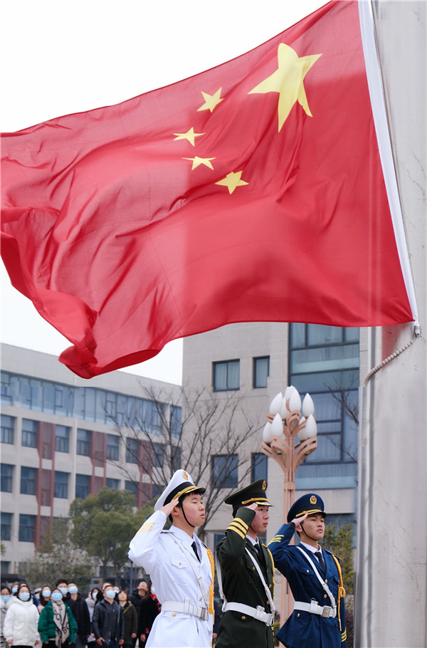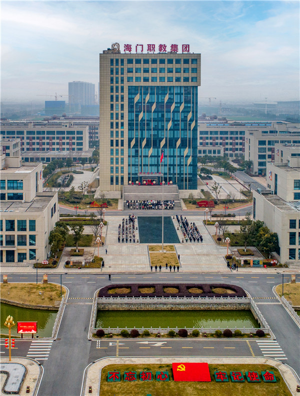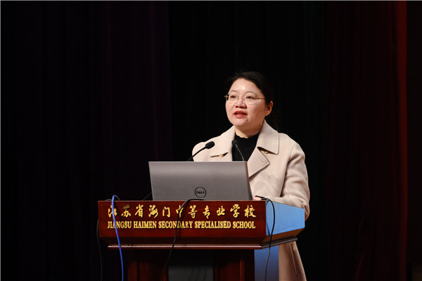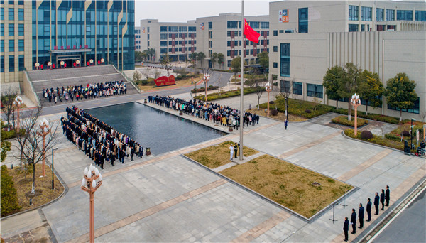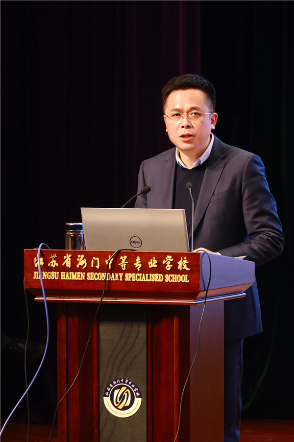 新学期,国旗从这里升起! 2月11日上午,海门中专以2022新春升旗仪式为“集结号”,激励全体教职工以更加昂扬的士气、更加饱满的精神开启新学年奋勇前行的新征程。 旗手迎风振臂,五星红旗缓缓升起,全场人员,整齐列队行注目礼,表达了对2022年最美好的祝福和期盼。 校长徐忠发表国旗下讲话,为全体教职工带来新学期第一课,勉励大家团结一心、砥砺前行,再谱学校高质量发展、高品质提升新篇章。 副校长周卫星带领教职工集体宣誓。 为人师表守师德,热爱职教精专业……铿锵誓言,表达出职教人的使命担当,汇聚起新起点再出发的强大精神力量。 开学工作会议第二阶段在科教大会堂举行。 首先,大家观看了新学期学校工作要点的解读视频。 随后,黄蓉蓉、朱敏敏和吴慧娟三位老师分别代表部门、系部、一线教师讲述新学期打算,字里行间,能量满满! 徐忠作新学期学校工作报告。 他以“打造新高地,争当新典范”为主题,从打造新高地,形成学校发展的驱动力;争当新典范,形成学校发展的最优策略;聚焦内涵提升,形成学校发展的内生动力;深化品质管理,形成学校发展的强引擎——四个方面,深谋远虑、高屋建瓴,指明了新学期努力方向,强调了学校工作的重中之重,重申了管理高效取胜之道。 同时,他也希望大家倍加珍惜来之不易的发展生态,倍加呵护弥足珍贵的和顺家园,在“万壑争流”的职教新时代闯出一片新的天地。