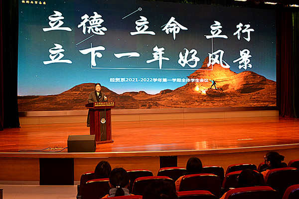 奔赴心中的理想,立下一年的好风景!2月13日下午15:30,经贸系在学校謇公湖科教大会堂召开了全体学生会议。经贸系主任施红华、副主任周晟及全体班主任、全体学生出席了大会。会议由施红华主任主持,共有两个议程。