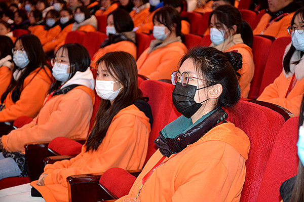议程二:施红华主任以“立德立命立行,立下一年好风景”为主题发言。施主任由2022年新年热门话题“中国女足亚洲杯夺冠”“北京冬奥会谷爱凌雪上运动金牌”的奋斗荣耀,和学生们分享了真正的成功需要靠持续锤炼的学习态度。新的一年已然到来,施主任从“立德、立命、立行”三个方面要求所有学生都能立下一年好风景、立下一年精气神!施主任的每一句话都深入浅出,用身边的例子来剖析,希望经贸学生们给海专注入青春、热爱和才华。上天是公平的,所有的努力都不会被辜负,只要肯努力,总有收获的一天。
