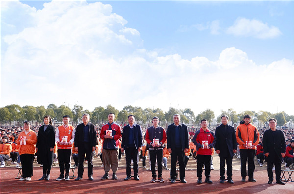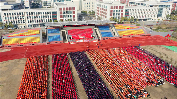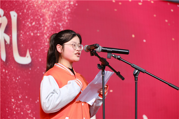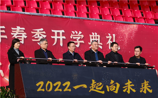 热闹春节浪漫冬奥,壬寅虎年奔跑而来。 打造新高地,争当新典范,海专新学期正式开启。 2月14日,海门中专新学期开学典礼在学校南操场隆重举行。 开学典礼以“让我们共同打造一个‘无论你怎么想,都想象不到’的新海门中专”为主题。 升旗仪式拉开开学典礼序幕。 静立国旗下,全体师生高唱国歌,鲜艳的五星红旗迎风飘扬,全体海专人感受着那份庄严肃穆。 全体师生宣读“一训三风”。 冯天宇同学带领全体师生宣读校训、校风、学风、教风,校园文化成为精神动力时刻激励着海专人。 学生代表讲述“我眼中的好老师”。 老师和学生,在教与学的生活体验中形成了丰富多层、紧密而温暖独特关系。财贸系沈佳乐同学的《我眼中的好老师是这样的》将“好老师”诠释得形象生动、直观可敬。 教师《敬畏》表达“师者初心”。 顾佩佩老师的发言,“敬畏”中饱含了一名青年教师对教育事业的敬重,对广大学子发自内心的热爱,表达了“老师们”的拳拳之心。 校长致辞期待“想象不到”的海专未来。 校长徐忠致辞,蕴含着一名主政海门中专16年的当家人可贵的职教梦想,传递出对全体师生的殷切希望和美好期待。 启动仪式吹响新学期号角。 校长们为学生代表佩戴校徽,赠送书籍,同学们戴上校徽,自豪感和荣誉感油然而生,并立志和学校成为“生命共同体”,从此风雨同舟,荣誉与共。 校长们共启鎏金屏,让人期待的2022年的新学期正式开启。 2022年,我们一起打造新高地,我们一起争当新典范。 2022年,我们一起向未来。