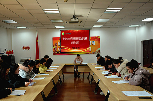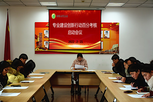 为推动系部专业建设的高速发展,立足新时期新形势,找准专业定位,创新专业机制,2月21日上午9:25,经贸系在209会议室召开了专业建设创新行动百分考核启动会议。经贸系主任施红华、副主任陈忠平、周晟及十多位专业老师参加了会议。