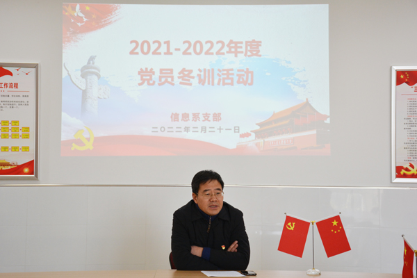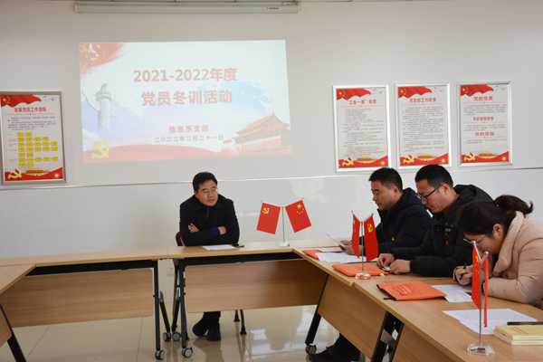 2022年2月21日9:40,信息系党支部在C1-232党员活动室召开党员冬训暨“能力作风建设提升年”月度活动。校党委委员、副校长周卫星同志,支部全体党员参加了此次活动。活动由支部书记徐亮同志主持,共分三项议程。
