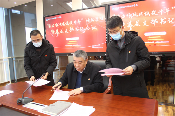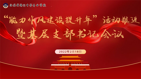 2022年2月18日下午,海门中专在图文信息大楼谷歌厅召开2022年学校“能力作风建设提升年”推进暨基层支部书记会议。党委书记宋健到会并作工作部署。 宋健首先对《2022年度学校党建工作要点》进行解读,从工作思路、总体要求、重点任务和具体措施四个方面展开阐述。宋健指出,各支部要善于成为“单打冠军”,善于打造特色亮点,善于创新党建模式。 宋健强调,要将学校党建工作与能力作风建设提升活动相结合。要通过“一体化、项目化、清单化、系列化和多元化”更好促进二者融合。同时,采用“浸润式、联动式、展演式”等形式促进党建活动创新开展。最后,宋健提出了党建工作和能力作风建设提升一体化推进的三个总要求,一是“补短板、强弱项”;二是“补能力、强作风”;三是“补知识、强作为”。两项任务相互补充,互为促进,相得益彰。 洪龚明作为支部书记代表作表态发言。他从“稳字当前、冲字当头、领字当先”三个角度阐述了支部书记工作思路,同时表达了干好本职工作的决心和信心。随后,洪龚明布置了相关党务工作。 最后,各支部书记现场签订《2022年度基层支部党建工作目标责任书》和《2022年度基层支部全面从严治党责任书》,向组织作出庄严承诺。 本次会议是继学校“能力作风建设提升年”活动动员大会之后的具体工作推进部署,进一步统一了思想,增强了干劲,明确了任务,为年度党建和“能力作风建设提升年”活动的高效推进奠定基础。