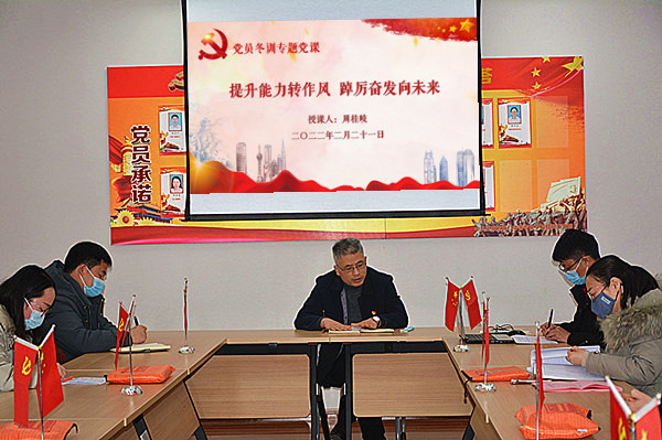 内容一:党员冬训微党课。周桂岐同志结合“能力作风建设提升年”活动,为大家上了一堂《提升能力转作风 踔厉奋发向未来》的党课。从为什么开展能力作风建设活动,能力作风建设应该改哪里、怎样改,要确保能力作风建设活动取得实效这三个方面对全体党员提出了要求:努力建设一支政治素质过硬、业务能力精湛、育人水平高超的新时代高素质党员教师队伍;要持之以恒转作风、树新风,以实实在在的成效赢得师生、家长的信赖和支持;要坚决纠治不正之风、解决突出问题的同时,大力倡导新风正气,结合党史学习教育,继承弘扬党的光荣传统和优良作风。