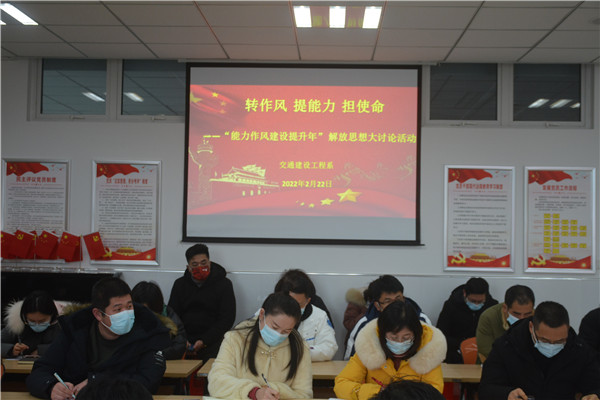 2月22日上午,交建系在B2楼214召开“转作风、提能力、担使命——能力作风建设提升年解放思想大讨论”活动。会议由交建系主任朱敏敏主持,交建系全体教师参加了此次大讨论活动。