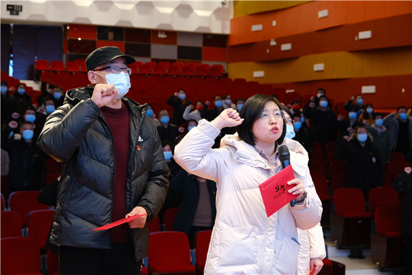 2月24日下午,海门中专党员齐聚科教大会堂,举行新学期党员大会暨2月主题党日活动,活动由党委委员、党委办公室主任洪龚明主持。 大会在庄严的国歌声中拉开帷幕。 政治生日 初心回望 2月是冯霞、张淑琴、汤国平3位同志政治生日月,洪龚明为政治生日同志赠送贺卡并送上祝福。 冯霞同志带领全体党员重温入党誓词。誓言依旧、初心不改,这是一份承诺,更是一种信仰。 学思 悟行 党员同志观看学习视频《我将无我 不负人民》。 习近平在回答意大利众议长菲科提问时“我将无我 不负人民”的深情表达曾一度刷爆网络,赢得广泛赞誉。视频让全体党员干部深刻反思:干事才是“本”。理想信念不坚定就会颠倒本末、进而追名逐利。要把人民立场当成一种党性修养,把甘于奉献作为一种价值追求。 解放思想大讨论 根据区委教育工委的工作部署,学校拟定了解放思想大讨论行动方案。党委书记宋健结合学校解放思想大讨论工作部署作了《让最讲政治融入血脉》的宣讲。 宣讲结合“能力作风建设提升年”方案中聚焦点之一——讲政治,结合七个方面内容进行解读。最后宋健提出要求,每位党员都要做政治上的明白人,时刻提高政治站位、把准政治方向、坚定政治立场、严守政治纪律。 党员干部谈体会 教学科研部主任、南通市教育系统优秀共产党员杨一丹作为党员干部代表发言。她从“善于学习、善于创新和争当示范”三个角度阐述了自己对于扎实开展“能力作风建设提升年”活动的感悟。她说,每个党员教师都应该扛起“打造示范、争当典范”光荣使命,锤炼能力,端正作风,以当好领跑者的姿态,交出新征程开局之年的优秀答卷。 基层书记谈项目 为落实“书记抓、抓书记”基层党建工作责任制、增强基层党支部书记管党治党责任意识,前期,学校各支部围绕“五育并举、心理健康、专业建设、产教融合”等内容申报支部书记项目。会上,电信系支部书记顾辉、机电系支部书记吴樱樱分别作了《“红色引擎”助力“劳动育人”》《构建“五促”工作体系、推动党建+专业深度融合》的项目立项报告,并表示认真制定“时间表”、画出“路线图”,高质量完成本支部书记项目,快步提升基层党建工作科学化水平。 在雄壮的国际歌中,大会落下帷幕。 奋斗新时代,启航新征程。在全区“能力作风建设提升年”如火如荼开展之际,海门中专也将以新面貌迎接新挑战,打造示范、争当典范,锚定全国千强优质职业学校新目标,奋力搏击、坚定逐梦。 (供稿:党委办)