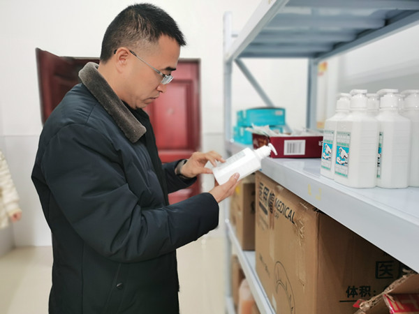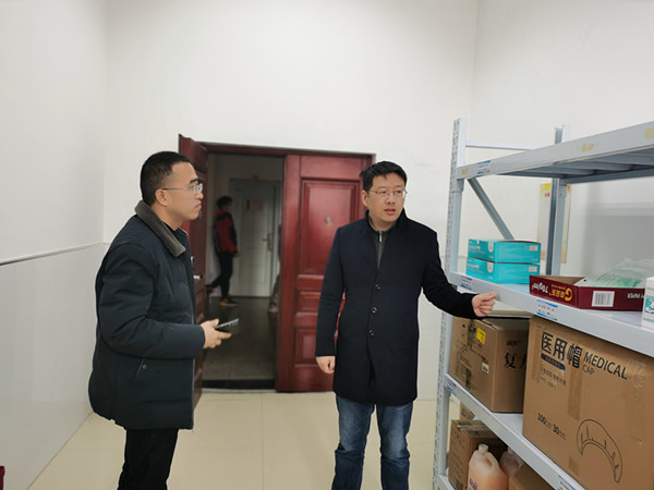 为确保在疫情防控期间防疫物资保障工作的有序推进,3月4日上午,后勤保障部主任袁兵、副主任王勤荣一同就学校防疫物资仓库仓储情况进行专门检查。