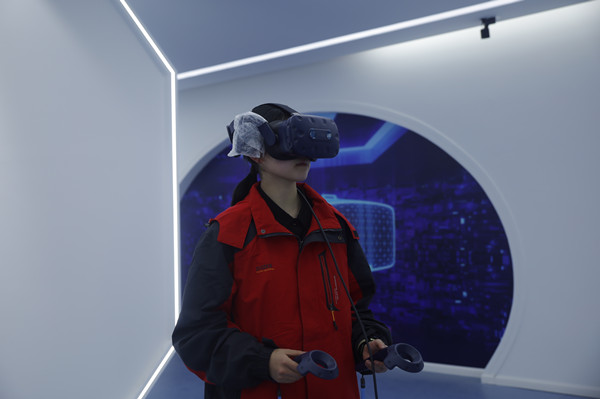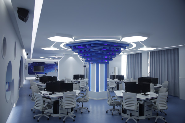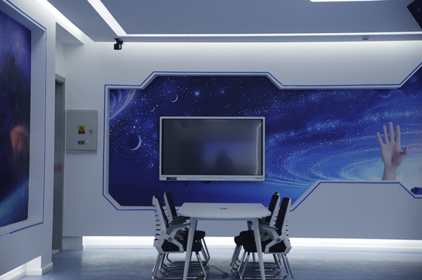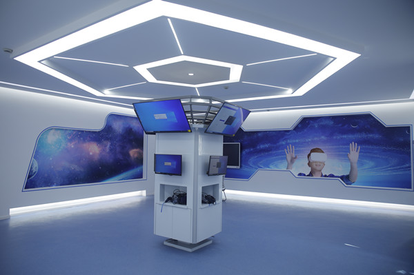 超越现实,身临其境——海门中专VR实训中心简介 VR实训中心建筑面积260平方米,可同时容纳50人。实训室环境设计充分考虑空间、色彩、造型、元素、材料与工艺六种因素,“六维一体”设计打造合理、美观、别致、安全的使用空间,呈现创新科技的共性以及每个分区的主题个性。实训室分VR教学交互区、VR教学实训区、VR体验区、讨论区和MR交互体验区五大区域。 一、VR教学交互区 VR教学交互区包含16.128平米的LED高清曲面屏,立体画面鲜艳细腻,适合大班集中VR教学。还可以播放3D电影,可以用于课后的休闲。 二、VR教学实训区 VR教学实训区每台PC机上提供了充足教学资源内容,支持学生从云平台下载VR内容到本地,并进行体验、浏览、管理。 三、VR体验区 VR体验区将虚拟实验场地活动与VR技术相聚合,学生在该区域可进行沉浸式教学体验,在VR头盔中进行多人协同实训实操。 四、讨论区 讨论区配有65寸鸿合电子触摸大屏,给学生提供实时讨论场景。 五、MR交互体验区 MR交互体验区具有超强的3D体验效果,能够实现1:1的交互体验感。 该实训中心集成了VR技术、3D技术、环境艺术、网络技术等先进科技手段,建立了四套沉浸式实景互动教学系统,学生通过佩戴VR头盔、借助高仿真3D情景模拟,得到身临其境般的交互式学习体验;师生在构建的虚拟、可交互教学环境中,实现多屏同步教学与多人协同实训,形成了一个以教师、学生、知识为闭环的结构体,改善了传统教学模式中的弊端,大幅度提高了学习效果和学习兴趣。 实训中心还配有位置跟踪系统、雅马哈定制音响系统、3D观影眼影等设备,并为本校汽修、建筑、数控、旅游等专业定制了相应VR教学资源。