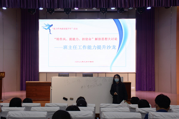 为进一步加强班主任队伍建设,探讨新时期班级工作的新思路、新方法,提高班主任教育学生和管理班级的能力,3月14日下午,机电系组织开展“能力作风建设提升年”解放思想大讨论之班主任能力提升沙龙活动。机电系主任吴樱樱主持沙龙活动。