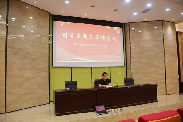 6月22日上午9:20,财贸系在名匠报告厅召开全体教师期末工作会议暨六月份思想政治学习活动,会议由王飞主任主持、主讲。