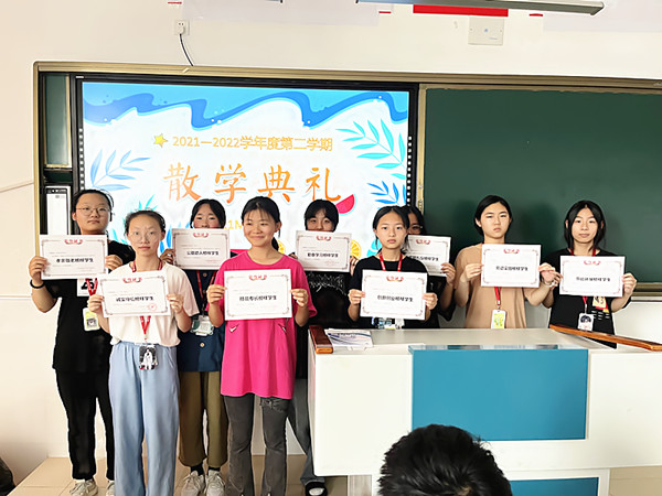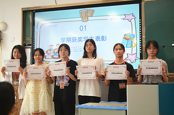首先,班主任颁发了本班学生在各项各类比赛和活动中获得的奖状与证书,学生们露出了灿烂开心的笑容,眺望新学期,学生们期待自己能获得更多的成绩,实现更大的梦想。
