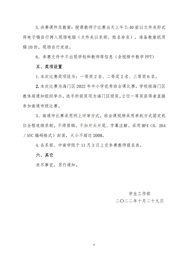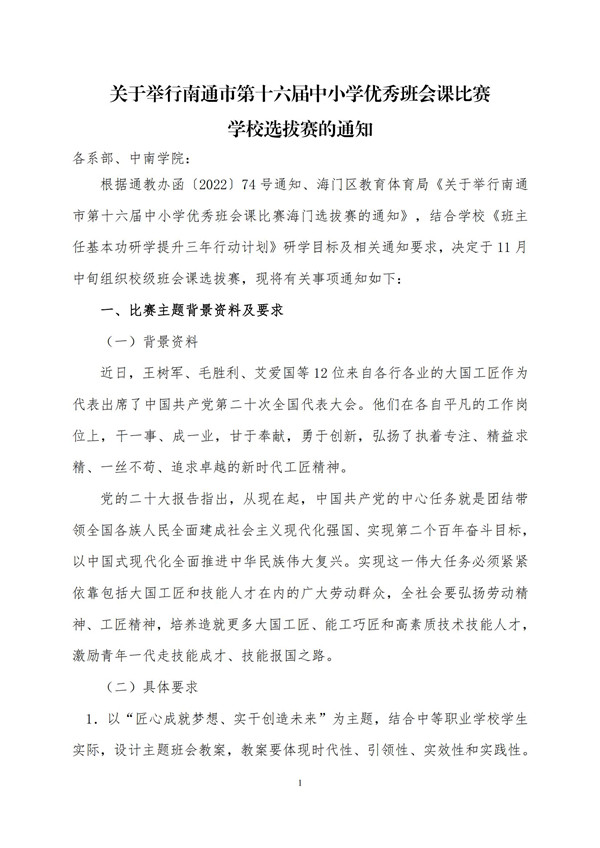 关于举行南通市第十六届中小学优秀班会课比赛学校选拔赛的通知