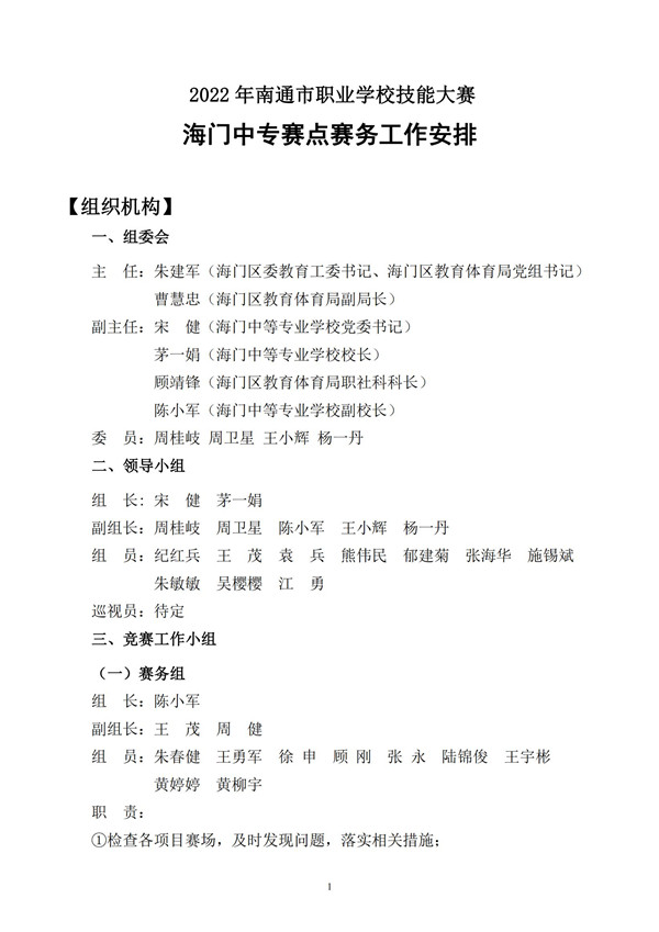 海门中专2022年南通市职业学校技能大赛赛点赛务安排