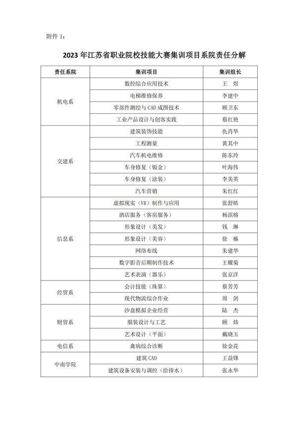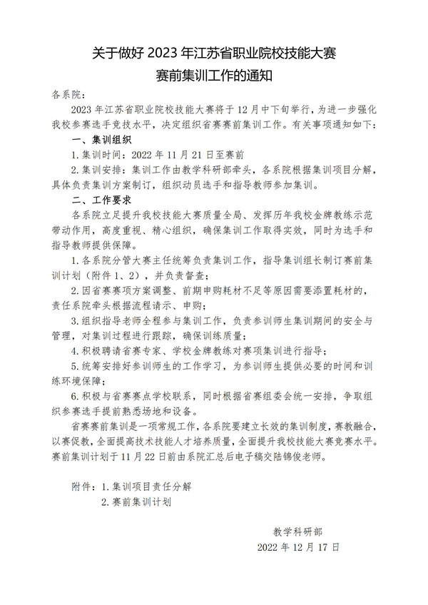 关于做好2023年江苏省职业院校技能大赛赛前集训工作的通知
