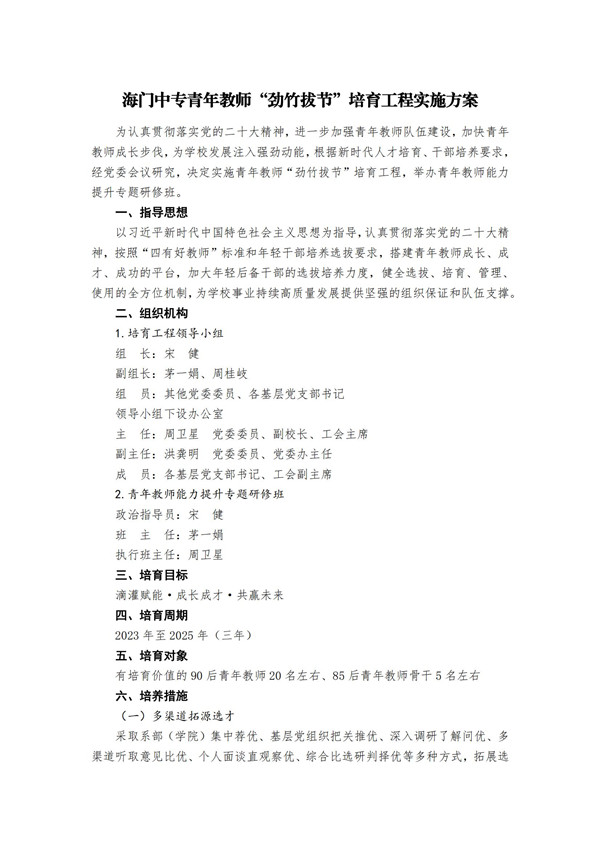 海门中专青年教师“劲竹拔节”培育工程实施方案