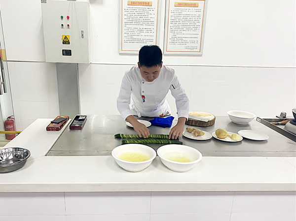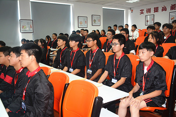 周晟主任从“烹饪”两个字的写法讲起,以“学厨做人”为题切入,为新生们介绍了中餐烹饪专业的办学历史、实训场地、参加技能大赛的情况、实习单位、优秀毕业生及升学的相关情况,同时采用现场教学方式为学生们进行了专业展示。学生们对本专业充满了期待和激情。
