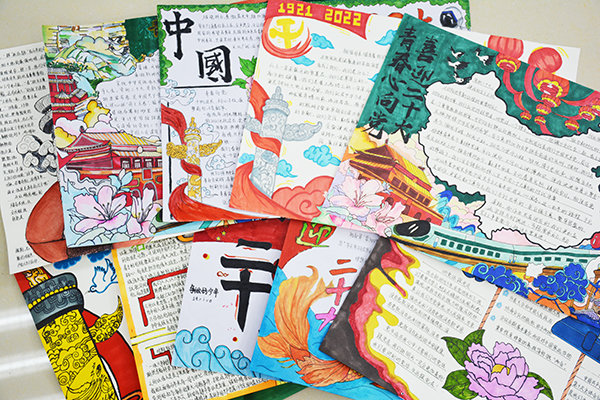 活动中,各班积极参与,查阅资料,了解中国共产党诞生、发展、壮大的辉煌历史,同学们用富有表现力的画笔,全方位、多角度描绘中国共产党领导下的革命英勇斗争场面和社会主义建设取得的伟大成就,以丰富多彩、图文并茂的形式介绍了党的百年奋斗史。一张张制作精美的手抄报,一幅幅色彩亮丽的图画,表达了对祖国的无限热爱和对党的深情祝福。