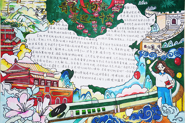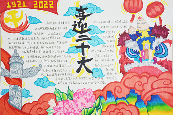 百年征程波澜壮阔,百年初心历久弥坚。2022年是进入全面建设社会主义现代化国家、向第二个百年奋斗目标进军新征程的重要一年,中国共产党也将召开第二十次全国代表大会。为了喜迎党的二十大胜利召开,继承优秀传统文化,培养学生爱国、爱党情怀,近日,信息系组织各班开展了“喜迎二十大,永远跟党走”手抄报评比活动。
