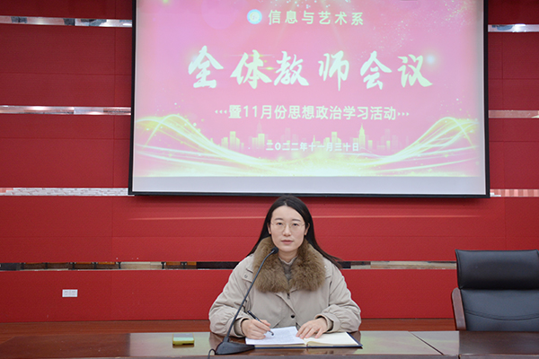 11月30日上午9:20,信息系在H楼演艺厅组织召开了系部全体教师会议暨11月份思想政治学习活动,会议由杨滨榕主任主持。