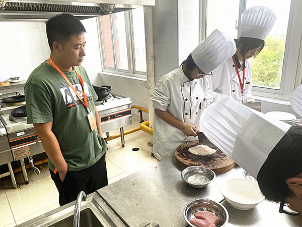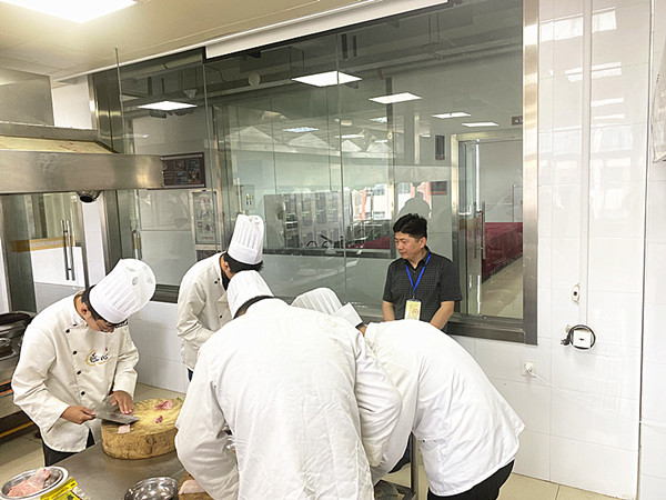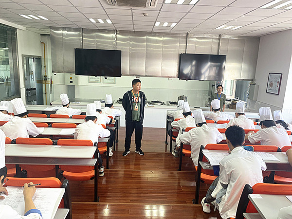 学生们遵守考试纪律,认真答题、规范操作;监考教师恪尽职守、认真监考,展现出了良好的考场风貌。理论考试完毕,学生们随后就进行了技能操作考核,普通的食材,在学生们的巧手下,已经变成了别样的“蝴蝶形花刀料型”“咕噜肉”“清汤鱼圆”和“六色冷拼”。专业老师们为学生在技能操作上取得的进步感到满意。技能考核结束,蔡建峰、陆莉莉老师为学生的作品打上了合适的分数。