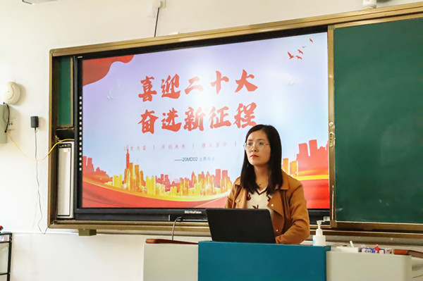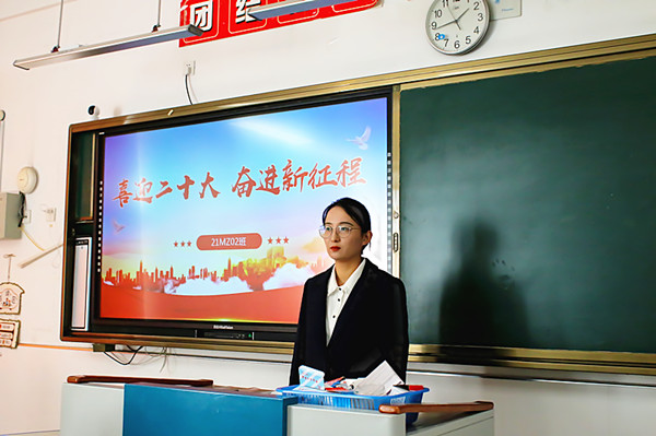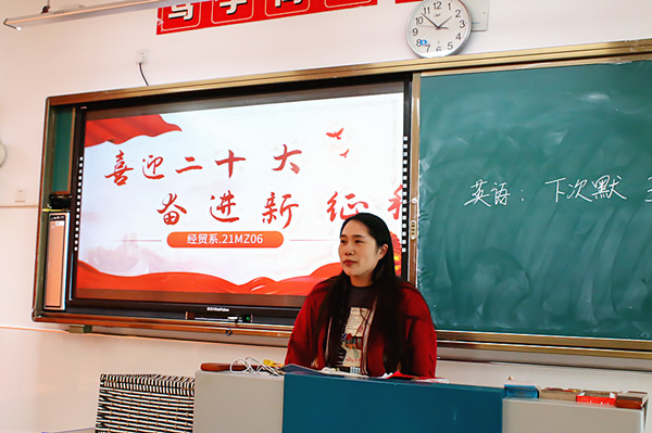 为更好的迎接党的二十大的到来,教育引导学生坚定理想信念,积极传承和践行红色精神,争做有理想、有本领、有担当的时代新人,10月14日下午第一课,经贸系组织开展了“喜迎二十大,奋进新征程”主题班会活动