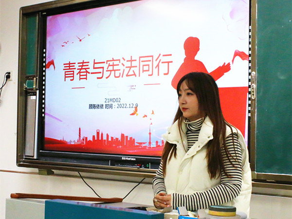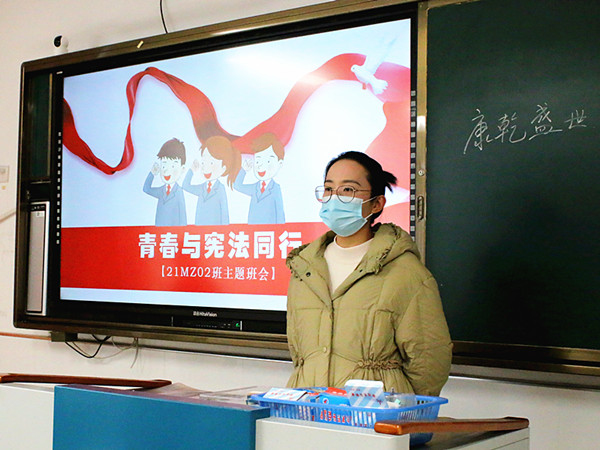 为深入贯彻落实习近平法治思想,进一步弘扬宪法精神,维护宪法权威,增强学生的法治意识和遵纪守法的自觉性,营造尊崇宪法的浓厚氛围,12月9日下午第一课,经贸系组织开展了“青春与宪法同行”主题班会活动。