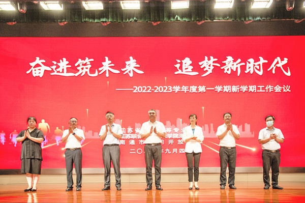 9月4日上午,学校在謇公湖科教大会堂召开新学期工作会议,开启新征程,一起向未来!党委委员、副校长周卫星主持会议。 会前,校党委书记宋健率领学校新任领导班子集体亮相并宣布领导班子分工。 工作要点解读 学校新学期工作要点围绕职业教育“增强适应性”和“高质量发展”两大核心要务,进一步统一思想、明确任务、夯实责任,动员全体教职员工以更高的境界、更实的举措、更大的力度,推动学校高质量发展,办好人民满意的教育。全体教职员工认真观看了工作要点解读视频。 学校工作报告 校长茅一娟作题为“守正创新,全速推进高质量发展”的学校工作报告,茅一娟指出,面对新形势、新生态、新要求,惟自警自醒者进,惟信念坚定者胜,惟改革创新者强。茅一娟勉励全体教职员工团结奋进,鼓足干劲,用守正的思维、创新的行动,积聚新动能,汇聚新合力,共同续写海门中专高质量发展的新篇章! 教师代表发言 教师代表黄彩萍畅叙从教经历,分享人生感悟,感恩美好遇见;新入职教师代表黄柳宇讲述入职体验,描绘职业蓝图,表达坚守初心,从原点出发,以满腔热忱投入职业教育事业的坚定决心。 党委书记寄语 宋健就做好本学期工作、冲刺年度目标任务提出三点要求。宋健强调,责任在心重千斤,使命在肩催奋进。全体教职员工要牢记使命和责任,倍加珍惜来之不易的发展机遇,以锐意进取的奋斗精神,迅速采取行动,全心全意完成各项任务。 新学期,新目标,新作为。希望全体教职员工深入领会会议精神,以昂扬的姿态积极争先创优,为学校高质量发展贡献更多智慧和力量。