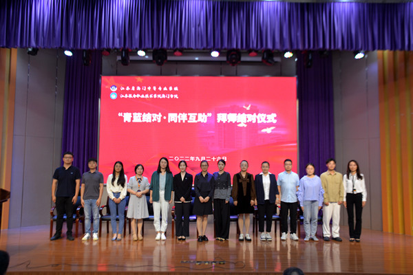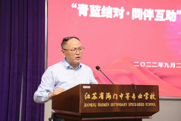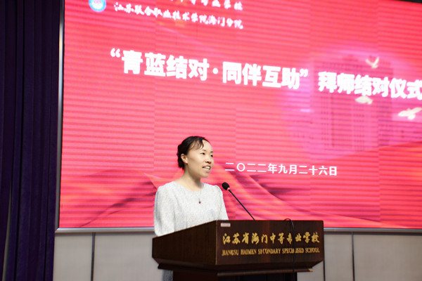 为充分发挥骨干教师引领示范作用,促进青年教师快速成长,在全校教师中形成互帮互学、同行共进的良好氛围,9月26日下午,海门中专 “青蓝结对·同伴互助”拜师结对仪式在国歌声中拉开帷幕。 海门中专副校长、工会主席周卫星解读“青蓝结对·同伴互助”实施方案,要求结对师徒以“青蓝工程”为依托,以“同伴互助”组合为基本形式,固本纳新,赓续匠心,提升整体素质,奋进新征程。 青蓝双方教师签订了“青蓝结对·同伴互助”协议书,随后,进行了简单而隆重的拜师仪式。 青年教师徐文慧表示,在青年教师专业发展最需要的时候,“青蓝工程”雪中送炭,今后将通过虚心学习请教,将教学之路越走越宽,越走越稳。 指导教师徐金花分享从教感悟,表示将和青年教师共同学习,共同进步,彼此成就。 海门中专副校长陈小军对青年教师寄予厚望。青年教师要做到“三学”:学思想——教育教学理念;学本领——教育教学基本功;学管理——班级管理方法。 青蓝结对,薪火相传,相信在青蓝双方的努力下,青年教师定会脱颖而出,挑起学校发展的大梁。