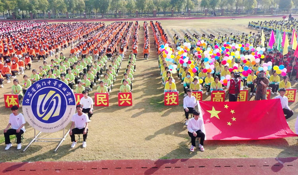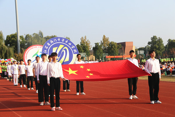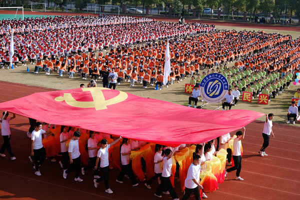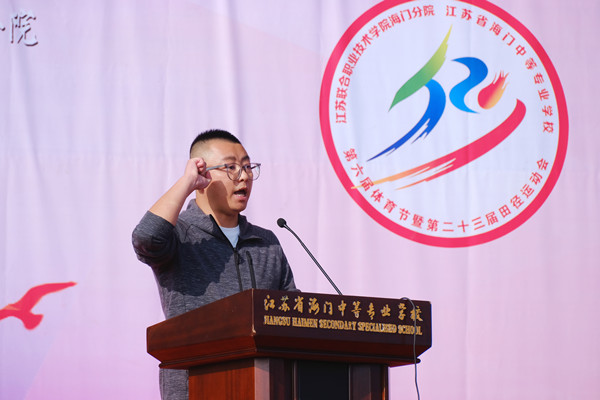 11月3日上午8点30分,海门中专高技能人才发展大会暨第六届体育节正式开幕。8300多名师生相聚在大会现场,共同迎接属于自己的激情时光。 海门区委教育工委书记、教育体育局党组书记、局长朱建军,区教体局副局长曹慧忠,区教体局职社科科长顾靖锋,海门中专党委书记宋健,校长茅一娟,党委副书记、副校长周桂岐,副校长陈小军出席开幕式,茅一娟主持开幕式。 盛大开幕,开启征程 朱建军宣布:“江苏联合职业技术学院海门分院、江苏省海门中等专业学校高技能人才培养大会暨第六届体育节开幕!”按下了海门中专高技能人才培养的加速键,拉开了第六届体育节的精彩序幕。 精彩入场,魅力亮相 国旗飘扬,火红的旗帜指引下,海门中专的高质量发展走出了职业教育的最强步伐; 校徽闪耀,节徽闪亮,海门中专在奔跑中奏响“高技能人才培养”的最强音; “体育强人民兴”“技能高国家强”“青年兴民族旺”,六大系部表演方阵以各自的方式释放青春活力,演绎奋斗成就美好未来,用智慧和汗水,展示了一场创意十足、色彩缤纷、活力满满的视觉盛宴。 升旗仪式,庄重肃穆 嘹亮的《义勇军进行曲》、严整飒爽的队列,在庄严肃穆的升旗仪式上,全体师生高唱国歌,向国旗致敬。 郑重宣誓,表达决心 裁判员、运动员代表的誓词铿锵有力,弘扬体育精神,努力拼搏,青春不止,追梦不息。 书记致辞,意蕴高远 海门中专校党委书记宋健致辞,展望学校高技能人才培养和发展蓝图,激励海专学子在运动中体验体育精神、劳动精神和工匠精神,充分领悟“奋斗拼搏”的意义,立志成为有理想、敢担当、能吃苦、肯奋斗的新时代好青年,为新时代人才强国战略贡献自己的青春力量! 火炬传递,接力精神 火炬传递在六大系部之间进行,仪式以视频与现场对接为亮点,时空相交带来了别具一格的现场感。 火炬沿着时代的路线一路向上。一路走来,海门中专翻越了国家改革发展示范校、省高水平现代化学校,省现代化示范性学校,向着省领航学校、省优质学校一路攀登。火炬传递,是事业的接力、精神的传承,在职业教育的发展征途中,海门中专师生一路同心,一路同行。 点燃圣火,点亮激情 曹慧忠点燃圣火,圣火点亮了海门中专职教新征程的美好愿景,点燃了海专人为新时代人才强国战略贡献青春力量的火热激情。 希望的气球腾飞,海门中专带着新时代职教理想乘风远航!