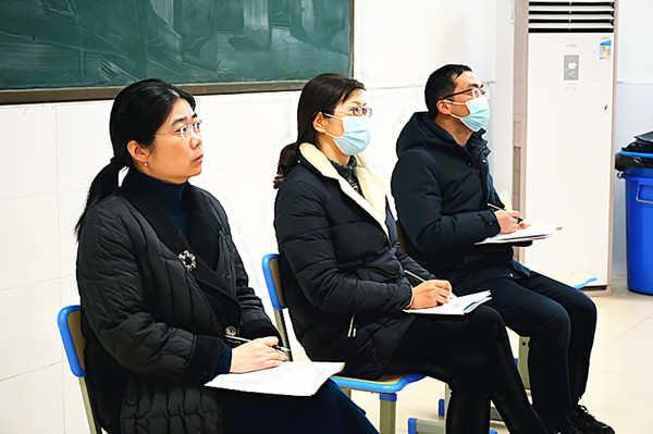 随后,在施红华的陪同下,茅一娟一行推开了18级专转本教室的门。班主任唐玉新老师正在认真的授课。专转本应考还有一个月余的时间,唐老师费尽心思,根据考纲要求和学生们的薄弱环节进行适当的内容调整,并将自己多年考前辅导的经验付诸于行动,多提问,多检阅,只为让每一个学生都能与自己的梦想更近一些。听课过程中,茅校长一行和施主任都能感受到唐老师的尽责和学生们的努力。课后,茅一娟和唐老师进行了现场交流,对唐老师认真的教学态度和学生们的学习热情给予了充分肯定,同时还倾听了他对课堂教学的想法,希望同学们在不久的专转本考试中都能金榜题名、得偿所愿。