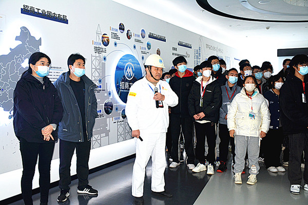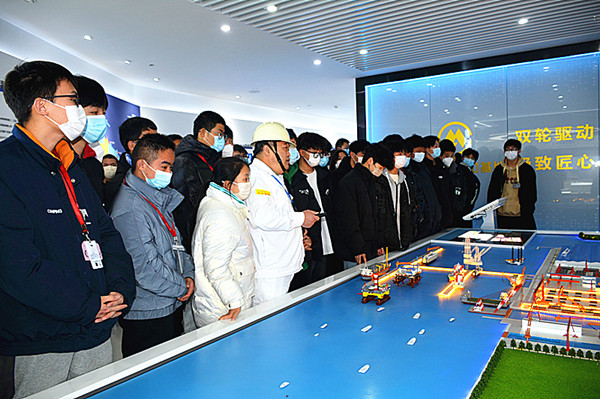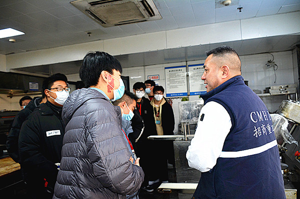 作为烹饪专业的学生,本次参观的重点区域是海门基地的中餐厅、西餐厅和厨房。学生们边走边用心观察、聆听领导的介绍,感受企业的良好氛围。基地的宴会厅大气高雅;中西餐厅别具特色;饼屋设备齐全,香味四溢;各类厨房整洁干净。员工们操作规范,各种美食应有尽有……大部分学生都是第一次如此近距离地接触如此优秀的餐饮环境,都对基地心生向往。参观的最后,经贸师生与招商重工领导进行了现场亲切交流,同学们就公司发展方向,发展需求和自身就业等方面提出了问题,并得到了详细热情的解答。