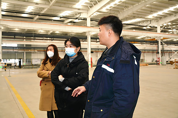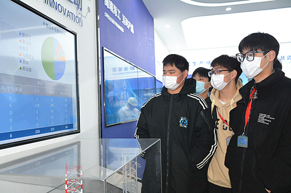招商重工海门基地总监兼行政管理部经理胡陆胜、后勤餐饮总监倪健春、行政部主管刘鹏热情接待了来访师生。招商重工集团是拥有悠久历史庞大体量的央企子公司,在邮轮制造方面居于国内前列。在招商重工各位领导的带领下,经贸师生依次参观了重工海门基地的展览陈列厅,智能制造中心、江边邮轮外围和邮轮舱室单元组装中心。同学们对船舶建造工艺有了崭新的认识。