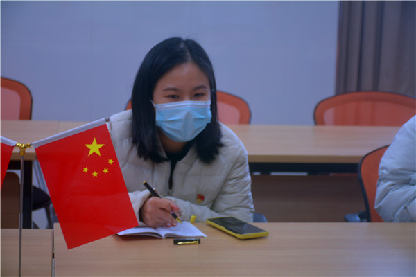 会议最后,朱敏敏带领全体党员进行冬训学习。朱敏敏希望大家坚持守正创新,全面提升冬训工作实际成效,要聚焦重点任务,围绕《冬训工作实施方案》抓好各项学习任务,确保各项要求落到实处、取得实效。要创新形式载体,综合运用“学习强国”学习平台,不断提升冬训质量和水平。