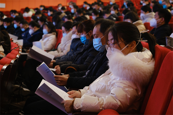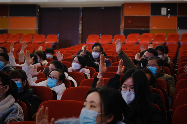 在报告最后,宋健号召:站在新起点上,学校高质量发展的壮美画卷正在徐徐展开,全校党员干部、师生员工要以习近平新时代中国特色社会主义思想为指导,深入学习贯彻党的二十大精神,在区委区政府、区委教育工委和区教体局的坚强领导下,高举旗帜向未来、满怀信心再出发,一棒接着一棒跑、一关接着一关闯,发扬新时代海专精神,胸怀“国之大者”,培育时代新人,不断书写海门中专高质量发展的新篇章!