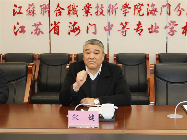 宋健代表学校欢迎客人来访,介绍了学校职教高考、综合高中的管理团队,希望双方深入交流,进一步弘扬优势、经验互享、紧密合作、创新发展,共同为南通职业教育发展做出更大贡献。
