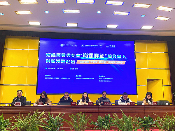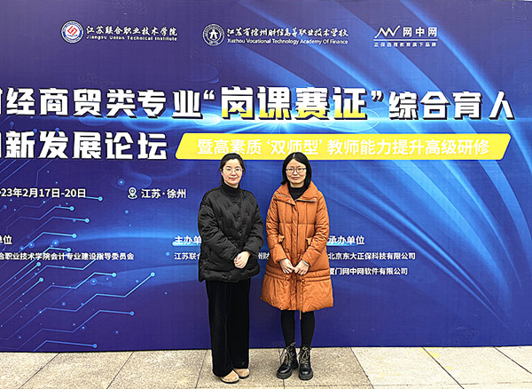 财经商贸类专业“岗课赛证”综合育人创新发展论坛暨高素质“双师型”教师能力提升高级研修,于2月18日至19日在徐州举行。本次会议由江苏联合职业技术学院会计专业建设指导委员会指导,江苏联合职业技术学院徐州财经分院主办,联院专指委秘书长李辉主持。经贸系教师黄锦欢、宋姝姝受邀参加。