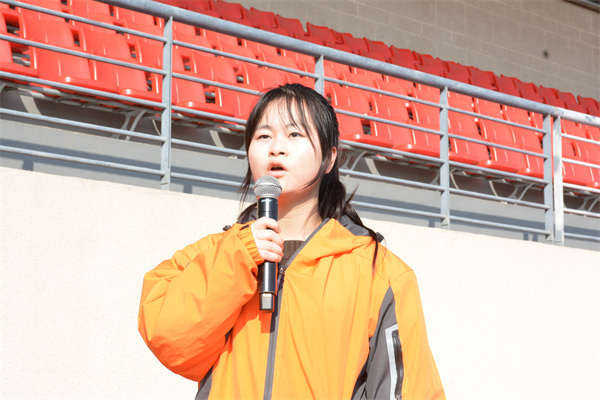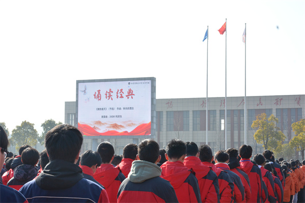 20CD01班学生王依婷带领全体学生宣读校训、校风、学风。