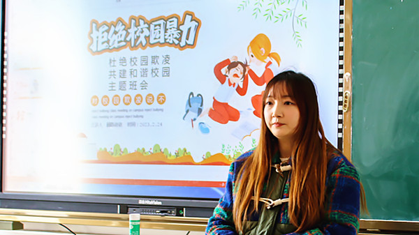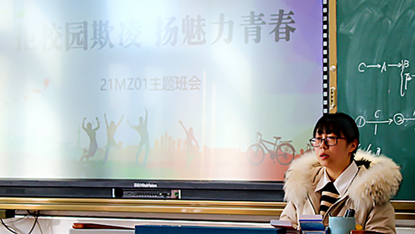 各班利用多媒体平台直观地展示了校园欺凌给受害者带来的伤害及严重后果,向学生讲解了有关校园欺凌、校园暴力的常识。其次利用经典案例告诉同学们当受人欺负的时候,要学会选择正确的躲避和处理方法,不能以暴制暴,否则,就会构成犯罪,将受到法律的制裁;同时老师还教育同学们要团结友爱,珍惜同学情、师生情,从自我做起,不恃强凌弱、不以大欺小、不聚众斗殴等,要树立良好的社会主义道德观,为周边人传递正能量,拒绝校园欺凌事件的发生,张扬魅力蓬勃的青春,以阳光积极的心态去面对学习和校园生活。