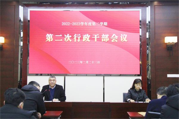 2月23日下午,我校召开本学期第二次行政干部会议,宋健书记强调重点任务,提出具体要求,茅一娟校长总结前期工作,并对下阶段工作推进作总体要求和全面部署。
