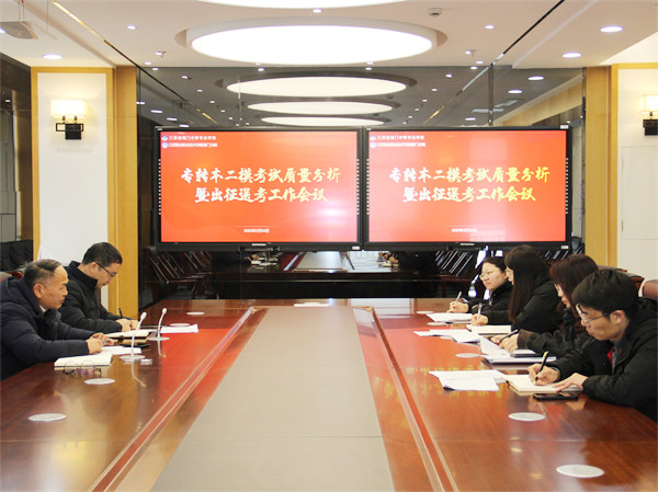 为总结经验,分析得失,便于更好地做好专转本后期的复习迎考工作,2月24日上午,我校在A楼十二楼百度厅召开2023届专转本二模考试质量分析暨出征送考工作会议。副校长陈小军、教学科研部副主任王茂、大中专系部主任参加会议。会议由王茂主持。