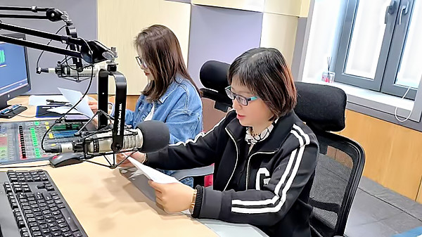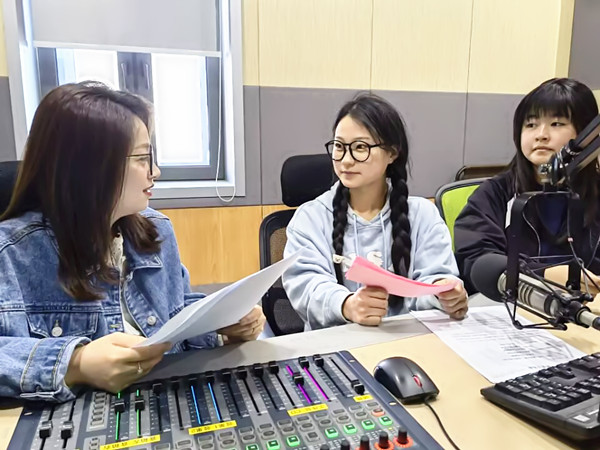 整个录制过程轻松愉快。主持人东东带着对海门民歌特有的情怀,亲切的与陈老师以及两位学生进行交谈。大家一起轻唱了传唱度特别高的"海门腌齑汤",探讨了海专"小民歌社团"成立的意义,给学生们带来的深远影响。录播室内对家乡民歌的热爱正携手共叙,学生表示海门民歌已经深铭于心,今后会和陈老师一起继续徜徉在家乡民歌的世界里,去感受和拥抱家乡的美好。