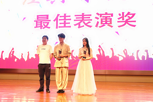 比赛历时两小时,经过一番激烈的角逐,最终评选出“最佳表演奖”2个,“最佳创意奖”3个,“最佳合作奖”5个,共计十个班级,并由系部副主任周晟以及黄蓉蓉、龚红卫老师为获奖班级代表颁发了金亮亮的奖杯。