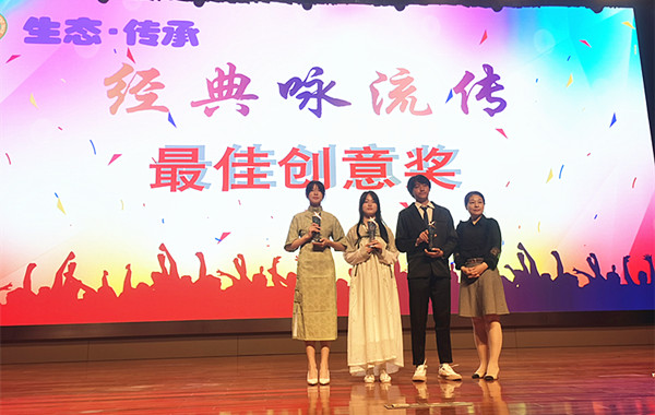 五千年文化,三千年诗韵,我们的美好传承从未停息。时光总像“林花谢了春红”,脚步太匆匆,在追寻经典的路上,“何妨吟啸且徐行”。走进经典,难忘经典,欣逢盛世,不负经典!(经贸系 陈瑶)