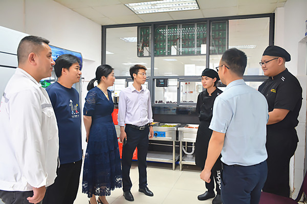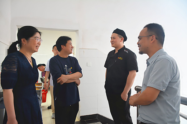 为进一步加强校企合作,强化学生实习管理,深入了解学生岗位实习状况。6月12日上午,经贸系主任施红华、副主任陈忠平、周晟及班主任沈杰一行来到招商重工海门基地,组织开展了中餐烹饪专业学生实习回访工作。招商重工海门基地后勤餐饮总监倪健春热情接待了来访一行。