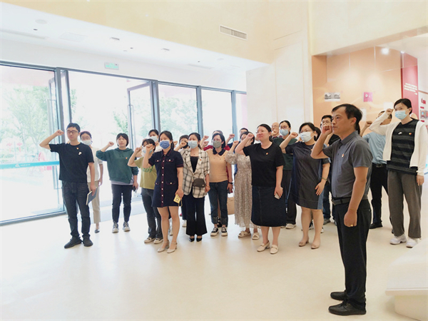 红客厅参观结束后,党员们奔赴海门区党史教育主题公园集体学习。全园分为“开天辟地、建国伟业、探索发展、改革开放、迈进新时代”五大功能区域和20个雕塑微场景,用心用情讲述中国共产党风雨兼程、几经转折、涅槃重生的漫长历程。全体党员通过回顾党的光辉历史传承党的伟大精神,并现场集体重温入党誓词,共同从波澜壮阔的历史中汲取精神力量。