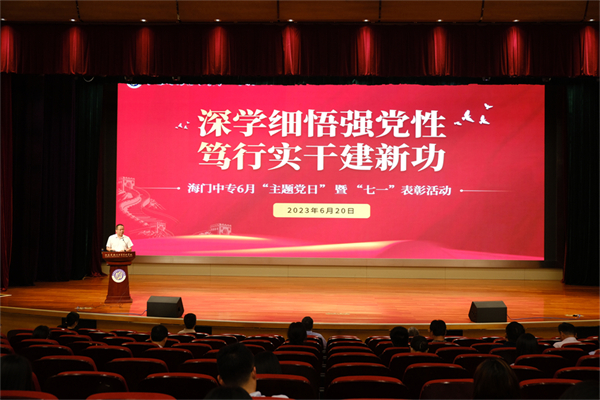 6月20日下午,学校党委在謇公湖科教大会堂开展6月“深学细悟强党性 笃行实干建新功”主题党日暨“七一”表彰活动。活动由党委委员、党委办公室主任洪龚明主持。在庄严的国歌声中,活动拉开帷幕。