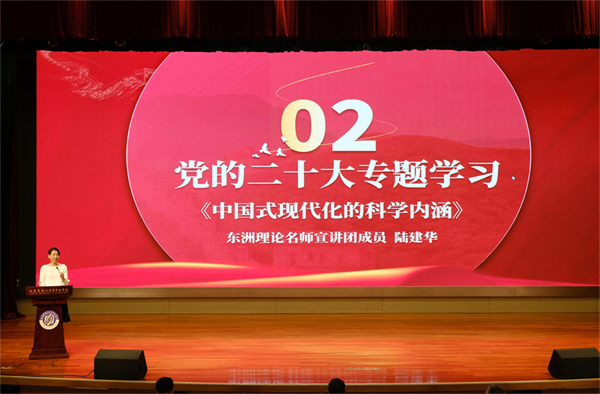学习“党的二十大” 打开事业新天地 东洲理论名师宣讲团成员陆建华为全体党员带来党的二十大精神专题学习:“中国式现代化的科学内涵”。党员同志认真聆听,仔细体会。
